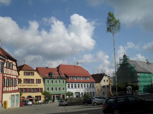 ... auch in der fränkischen Kleinstadt Aub wurde der Brauch des "Maibaum-Aufstellens" mit einem Rahmenprogramm vollzogen. Unter den Klängen der Historischen Trachten- u. Stadtkapelle Aub stellten die fleisigen Helfer der Freiwilligen Feuerwehr der Stadt Aub den stolzen Maibaum im Zentrum der Stadt Aub auf. Anschliessend wurden die Anwesenden am Marktplatz von den Kindern des Kindergartens der Stadt Aub mit deren Sing- und Tanzspielen erfreut.